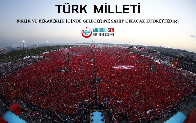 TÜRK MİLLETİ GELECEĞİNE SAHİP ÇIKACAK KUDRETTEDİR Türkler, Anadolu'yu yurt edindiği ilk günden itibaren düşmanları tarafından her zaman yapılması muhtemel saldırılara karşı hazır olma psikolojisi ile hareket etmiştir. Ancak dıştan açıkça gelen tehditlere tedbir alma ve bertaraf etme noktasında kahramanca verilen mücadelelerde destan yazan Necip Türk Milletini, tarih boyunca zor durumda bırakan hadiseler içimizden çıkan hainlerin dış güçlerle bir olup milletimizi sırtından vurma girişimleri olmuştur. Bu hadiselerin en sonuncusu ise 15 Temmuz gecesi FETÖ mensupları tarafından sahneye konmuş ve Türk Milleti canı pahasına verdiği mücadele ile bu hain girişimi bertaraf edip püskürtmüştür. Bugün siyasi iktidarın iç yapısından kaynaklanan sıkıntılardan ötürü FETÖ ile mücadelede bazı noktalarda eksiklikler olması ve eli kanlı terör örgütü mensuplarına hesap sorarken yine tespit edilemeyen kriptolar aracılığı ile mücadele sürecinin sulandırılmasına yönelik olarak haksız mağduriyetlerin oluşturulduğu bir ortamın mevcudiyeti açıktır. Ancak bu tür eksikliklerin FETÖ ile mücadele hızını zaafiyete uğraşmamasına azim dikkat gösterilmelidir ve haksız bir mahiyette oluşturulan adaletsizlikler bir an önce giderilmelidir. Şimdi 15 Temmuz hain darbe girişimini yapanlara ivedilikle hesap sorulurken bir taraftanda asıl üzerinde durulması gereken konu, devletini en büyük nimet bilip sadakatle bağlı olan masum Anadolu insanın çocukları elinden alıp ve okutup, Türk milletinin değerleri ile buluşturup devlete ve millete hizmet ettireceğine iddia eden sözde dini mahiyetteki bir grubun, hangi sosyolojik zeminden faydalanarak ortaya çıktığı ve netice itibariyle darbeye hangi saiklerle mensuplarını ikna ettiğinin incelenmesi ve bir daha bu tür hain girişimlerin vukuu bulmaması için nelerin yapılması gerektiğinin ortaya konması ve harekete geçilmesidir. Bu duygu ve düşüncelerle Anadolu topraklarını yurt edindikten sonra dahili ve harici düşmanları tertiplerine karşı nefsini öteleyerek vatanı, milleti ve devleti için canını feda ederek şehadete yürüyen vatan evlatlarının manevi huzurunda saygı ile eğiliyoruz. Ruhları şad, mekanları cennet olsun inşallah. Bizlere bıraktıkları emaneti kanımızın son damlasına muhafaza edeceğimize söz veriyoruz. ANADOLU-SEN KONFEDERASYONU GENEL MERKEZİ